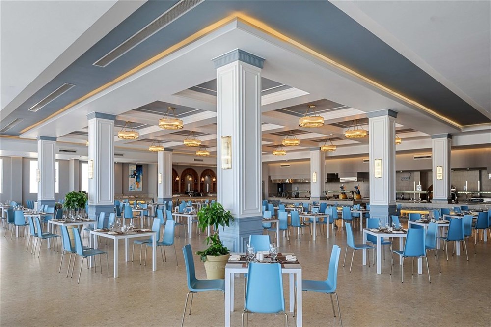 • all inclusive (přesný popis all inclusive obdržíte po příjezdu na hotel)- strava formou plné penze- neomezené množství rozlévaných alkoholických a nealkoholických nápojů místní výroby servírované ve sklenicích• restaurace a bary: - restaurace: Castello, Kaiserblick, L'Asiatique, Alfredo, Culina, Sidi Ali- bary: bar u pláže, Castello, Sports Bar, Piano Bar, lobby bar, Mauve Bar, Columbus, Espresso Cafe & Bar, Jacuzii bar u bazénu
